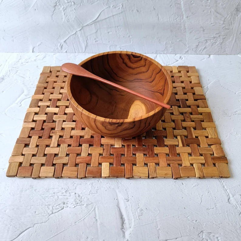 ชามไม้สักทำมือ งานฝีมือคุณภาพสูง ชามตกแต่งกลางโต๊ะ ชามราเมน ของตกแต่งกลางโต๊ะอาหาร
