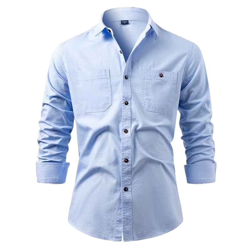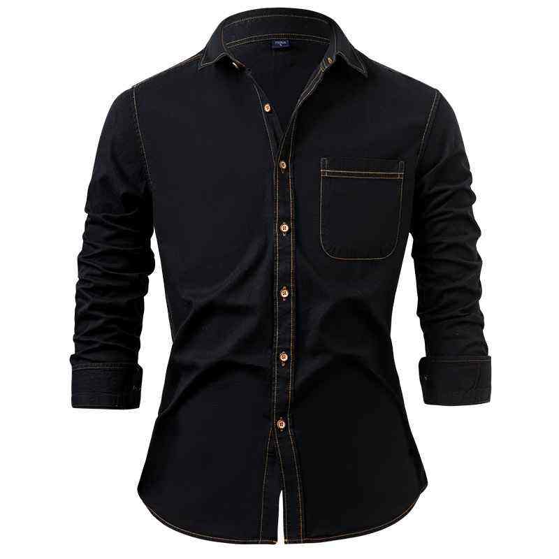 เสื้อเชิ้ตเดนิมลายสก็อตผู้ชาย Solid International ผสมผ้ายืดคอตตอน ป้องกันรอยยับ แห้งเร็ว เป็นมิตรกับสิ่งแวดล้อม แขนยาว