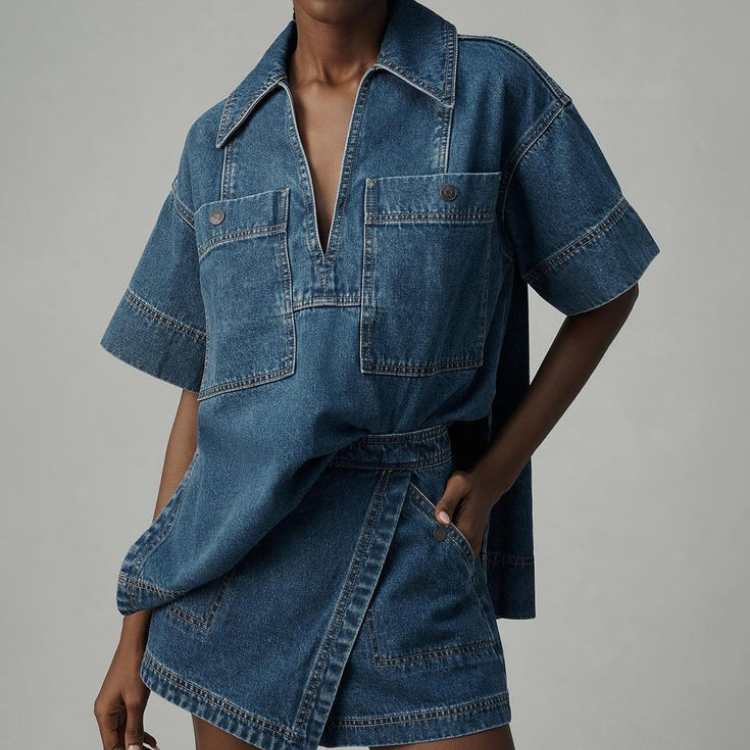 ชุดยีนส์ยีนส์สำหรับผู้หญิงชุดฤดูใบไม้ร่วงที่สง่างาม OEM โลโก้ที่กำหนดเอง + การออกแบบ + สีที่ทำในเวียดนาม