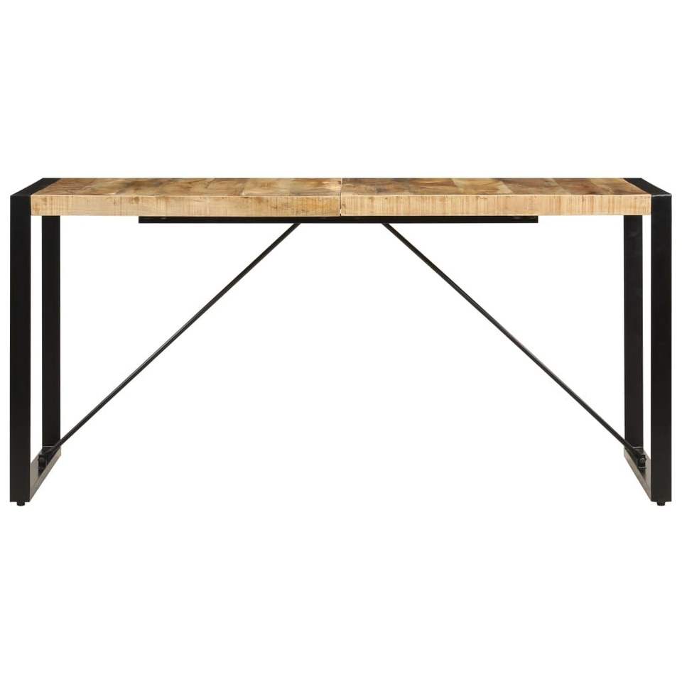โต๊ะรับประทานอาหารไม้มะม่วงเนื้อแข็งและเหล็กเคลือบสีฝุ่น สีน้ำตาลและสีดำ สวยงามและทนทาน