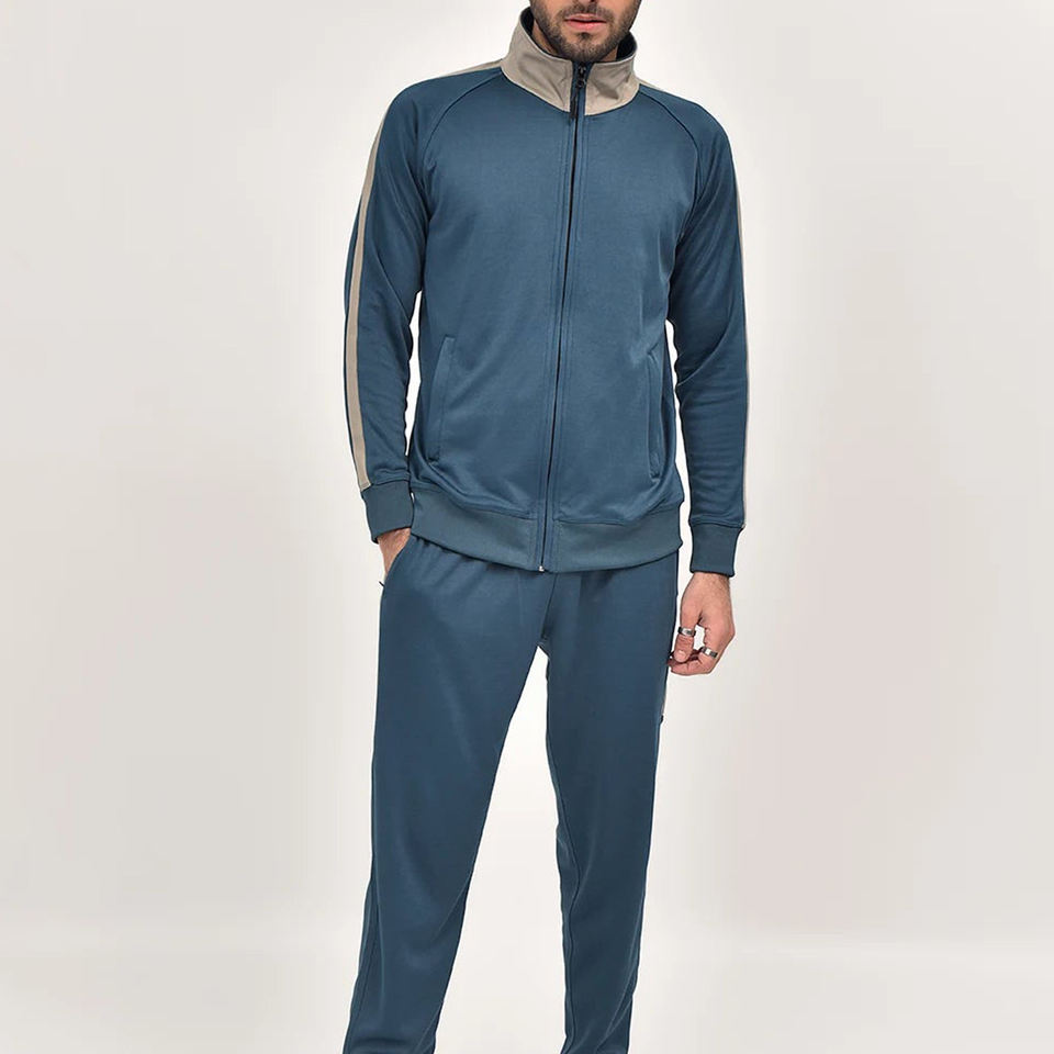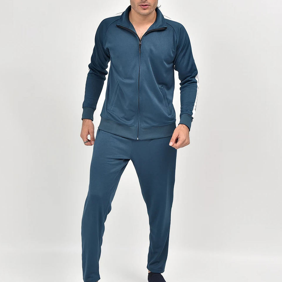 ชุดวอร์มผู้ชายแบบสองชิ้น เสื้อแจ็คเก็ตและกางเกงขายาว ชุดกีฬา ชุดออกกำลังกาย ผ้าโพลีเอสเตอร์ 100% ชุดลำลองสำหรับผู้ชาย ชุดออกกำลังกายในยิม