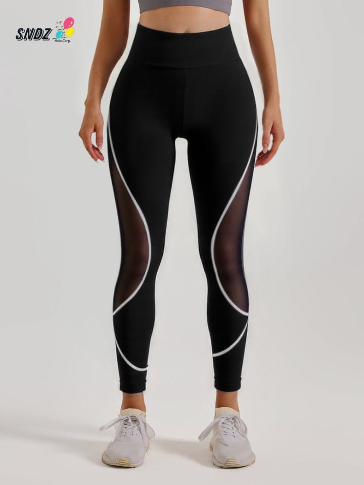 กางเกงโยคะผ้าตาข่ายเรียบง่าย สไตล์ยุโรป-อเมริกา เอวสูง ยกสะโพก เอวยืดหยุ่น ความยาวเต็มตัว สำหรับผู้หญิง เป็นมิตรกับสิ่งแวดล้อม ระบายอากาศได้ดี