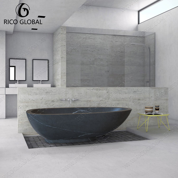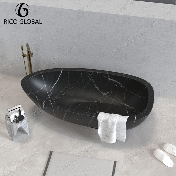 Solid Natural Marble Spa Bathtub with Ergonomic Curved Shape Unique Stone Veining for High-End Bathroom Renovations