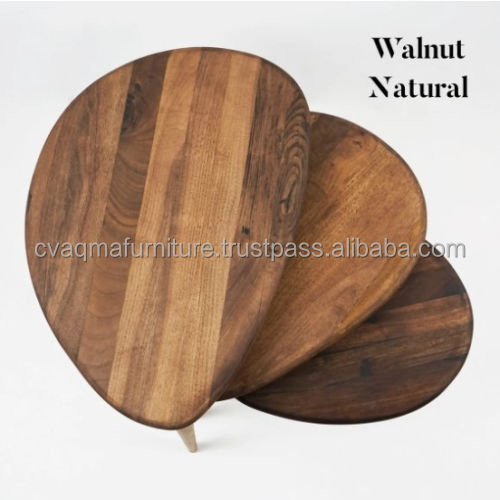 Solid Nesting Table Set of 3 Natural Brown Color Modern Design