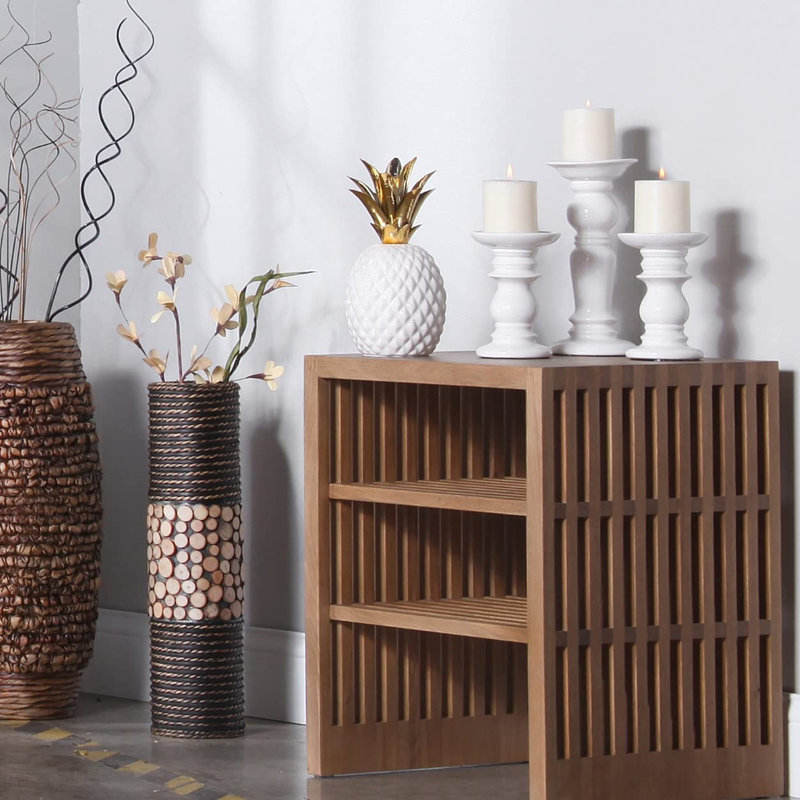 โต๊ะข้างไม้โอ๊คยาว18 "พร้อมชั้นวาง2ชั้นเป็นโต๊ะข้างเตียงหรือโต๊ะเน้นเสียงสำหรับห้องนั่งเล่นหรือห้องนอน