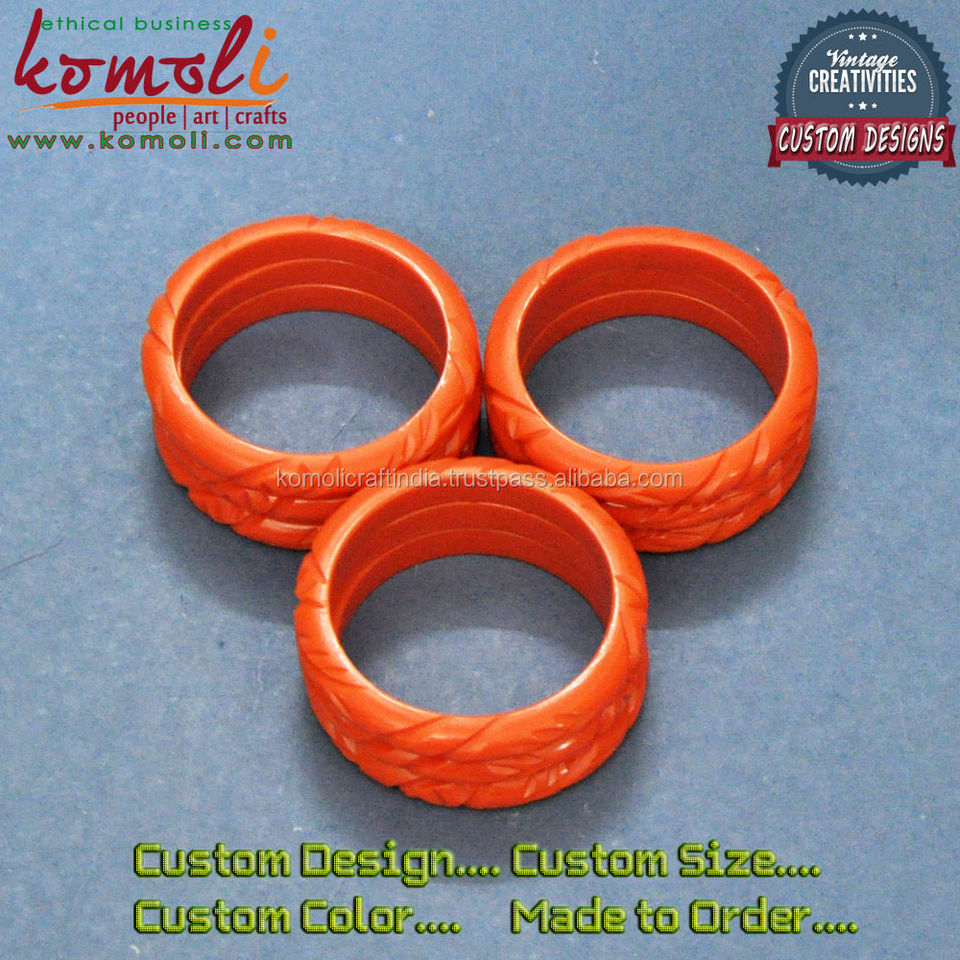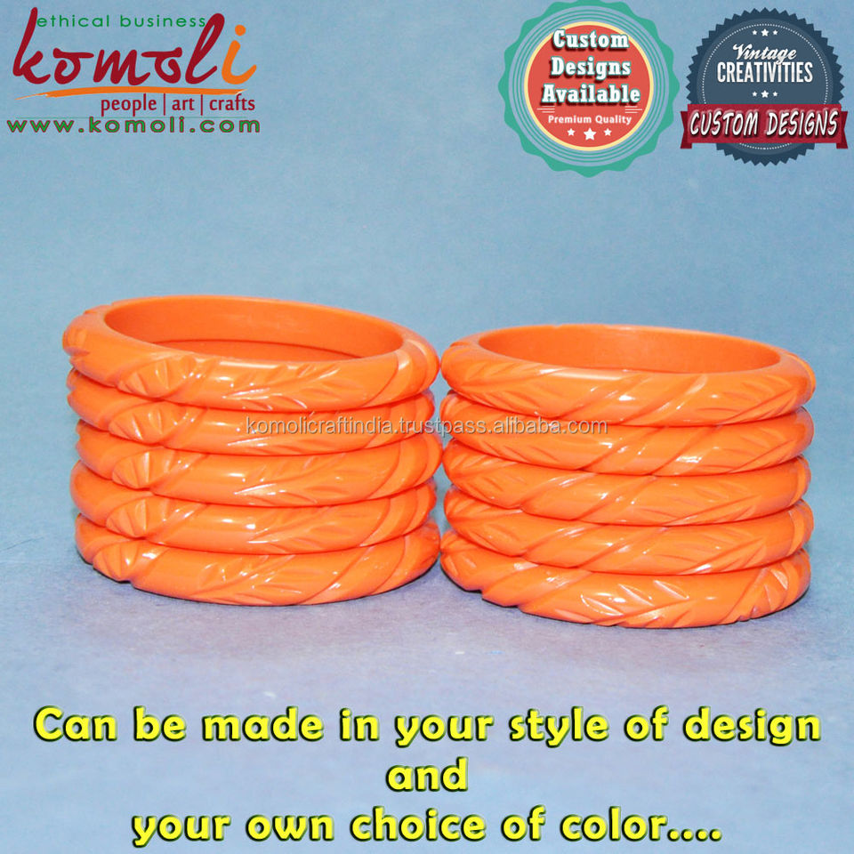 สีส้มทึบดอกไม้แกะสลักกำไลข้อมือที่กำหนดเองสร้อยข้อมือเครื่องประดับที่ทำด้วยมือ