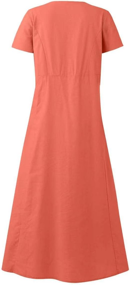 Solid Orange Maxi Dress for Women Short Sleeves Scoop Neck Pockets Loose Fit A Line Long Comfortable Daily Wear