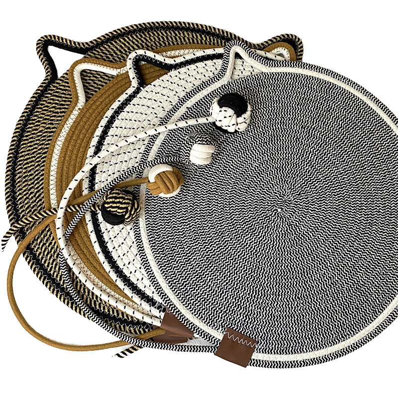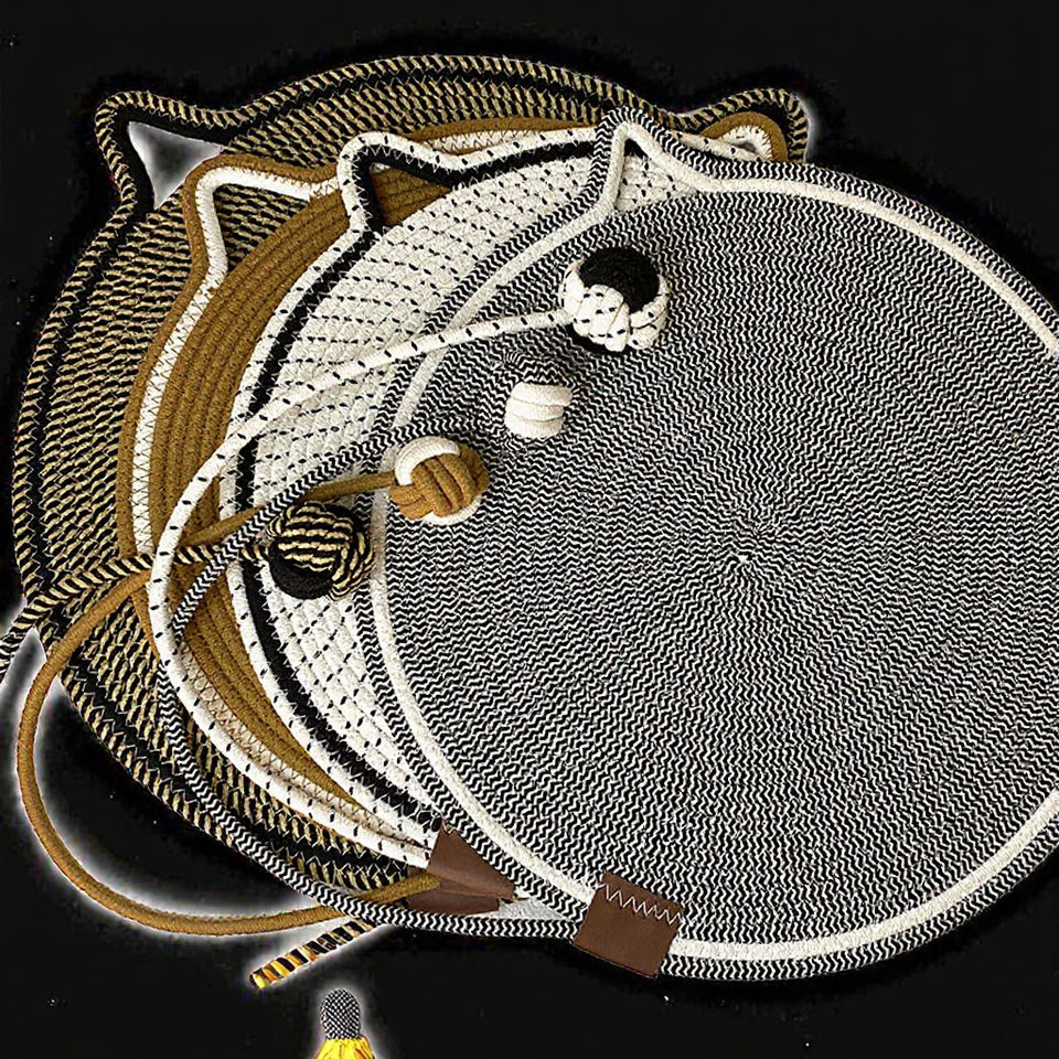 แผ่นรองนอนแมวแบบแข็งแรง ทนทาน ลายทอเชือกฝ้าย พร้อมของเล่นลูกบอล ทนต่อการขีดข่วนและสึกหรอ ซักล้างได้