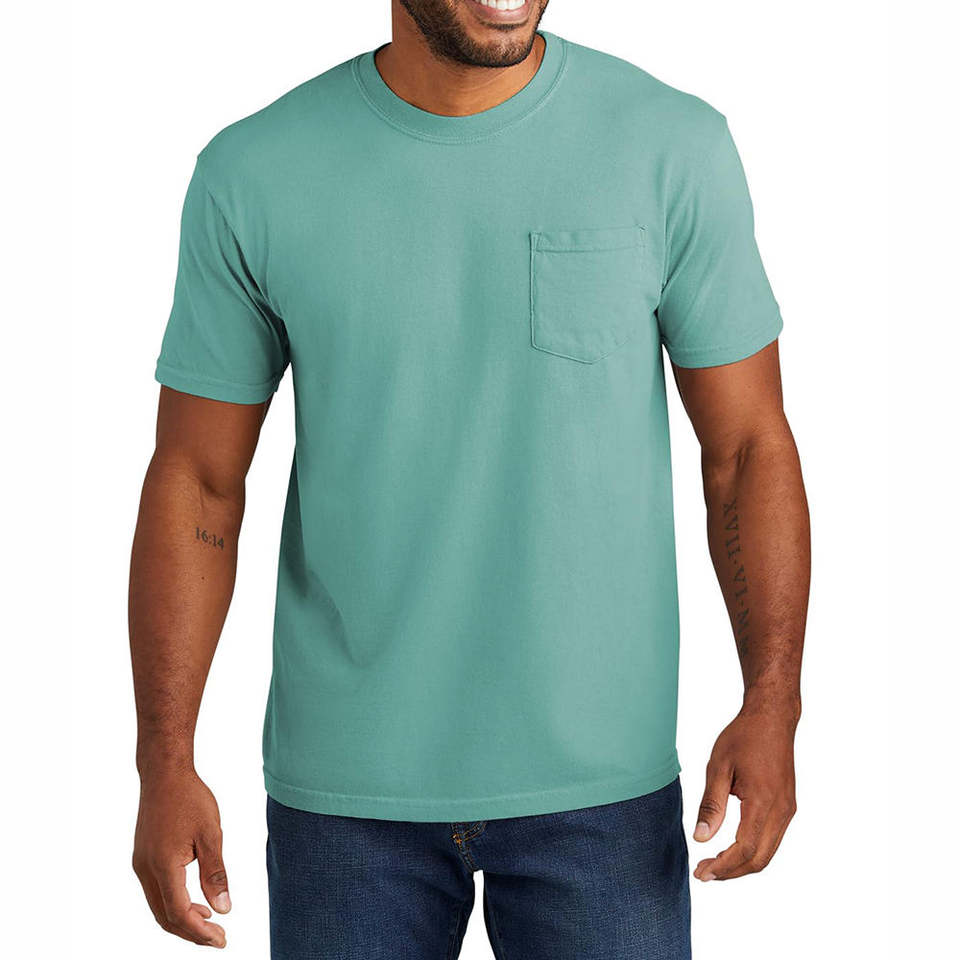 เสื้อยืดผู้ชายแขนสั้นลายเรียบสีสันตามสั่ง ราคาถูก ผ้าฝ้ายผสมโพลีเอสเตอร์ มีกระเป๋าเสื้อ