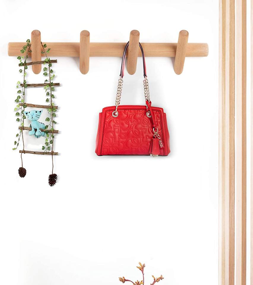 ที่แขวนเสื้อโค้ทไม้สนและราวแขวนเสื้อผ้าที่ทันสมัยติดผนังตะขอแขวนกระเป๋าสำหรับทางเข้าห้องนอนและห้องน้ำ