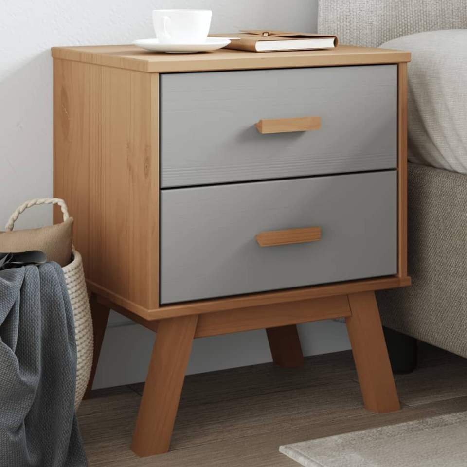 ตู้ข้างเตียงไม้สนแท้และไม้เอ็นจิเนียร์สีเทาและสีน้ำตาล