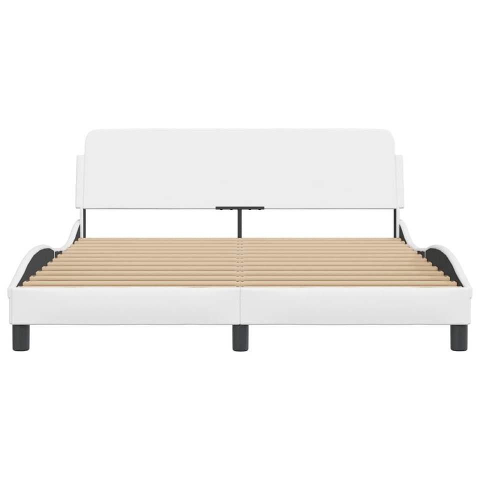 โครงเตียงควีนไซส์ไม้สนแท้และไม้อัด หุ้มด้วยหนังเทียมสีขาวและโครงโลหะ เตียงหุ้มเบาะขนาดควีนไซส์