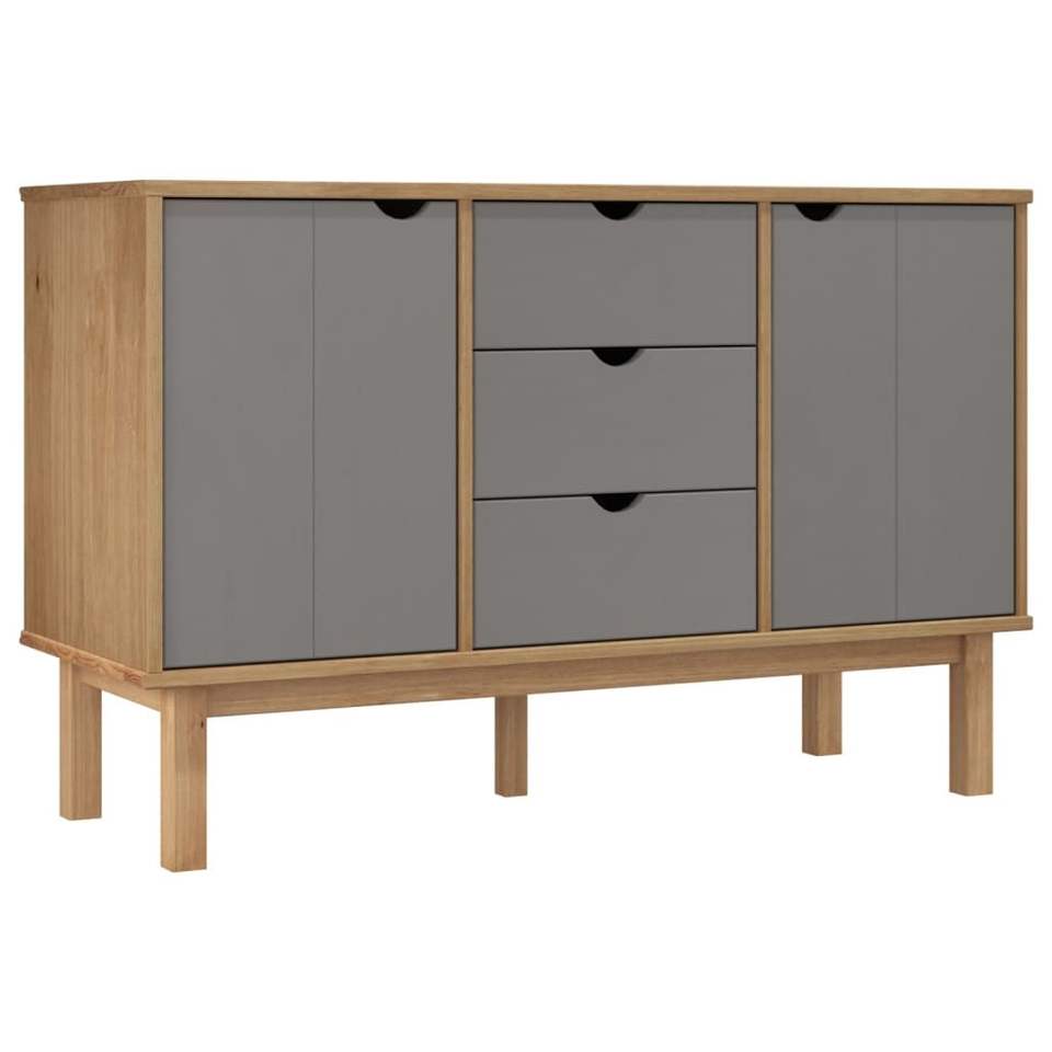 ตู้ข้างทำจากไม้สนแท้และไม้เอ็นจิเนียร์สีน้ำตาลและสีเทาสำหรับตู้เก็บของในห้องนั่งเล่น