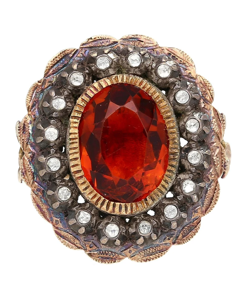 ทองแท้โบราณยุควิคตอเรียซิทรีนและเพชรผ่านการรับรองในแหวนทองสำหรับผู้หญิงเครื่องประดับแฟชั่น