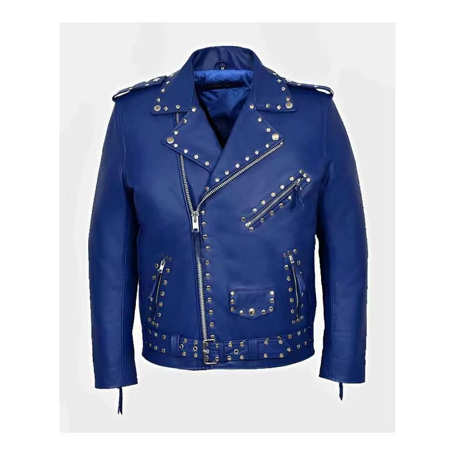 เสื้อแจ็คเก็ตหนังผู้ชายประดับหมุด
