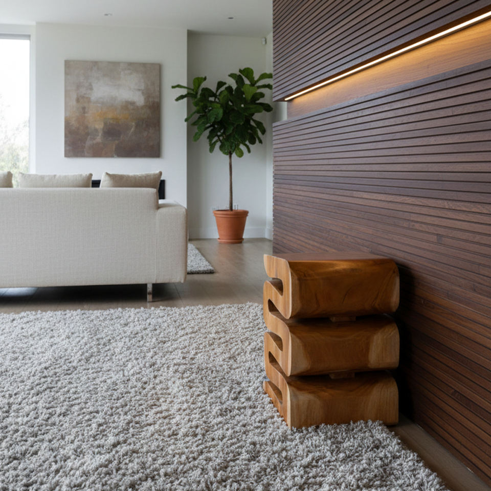 เก้าอี้ไม้สักลายคลื่น ดีไซน์โดดเด่น รูปทรงแปลกตา เหมาะสำหรับตกแต่งทางเข้าบ้าน โรงแรมบูติก และบ้านสไตล์เรียบง่าย