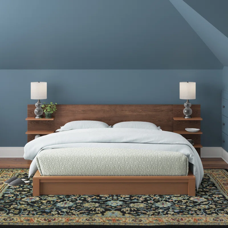 โครงเตียงไม้สักเนื้อแข็งดีไซน์ทันสมัยขนาดคิงไซส์สำหรับเฟอร์นิเจอร์ห้องนอน