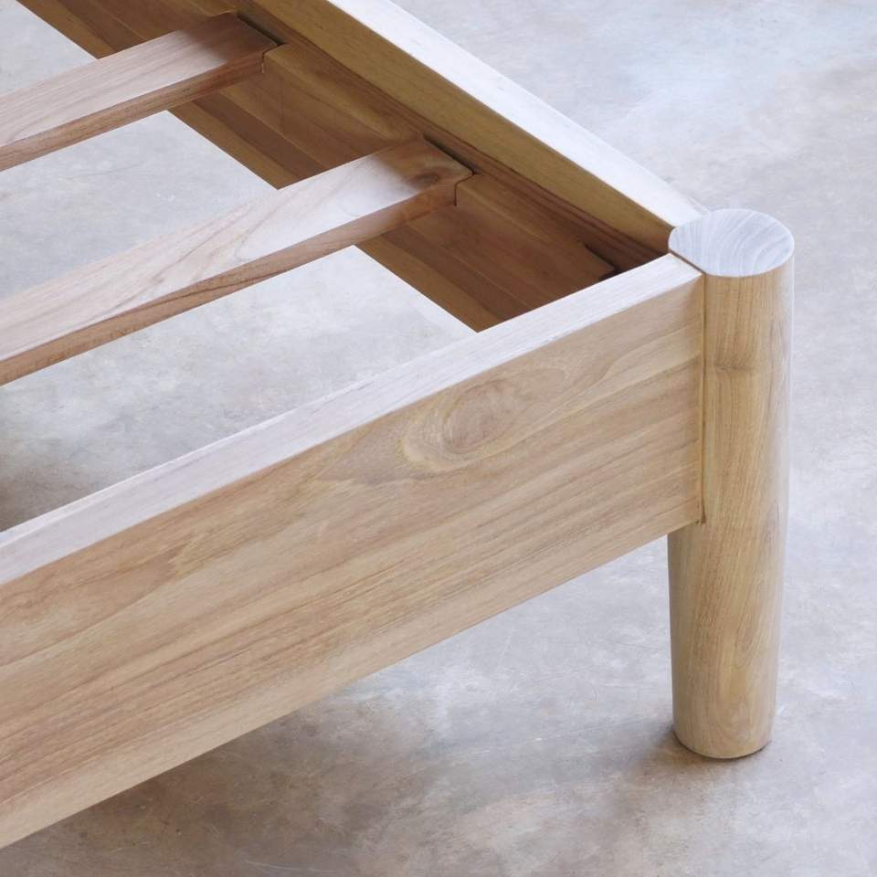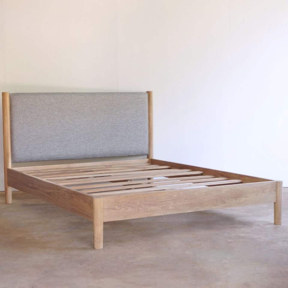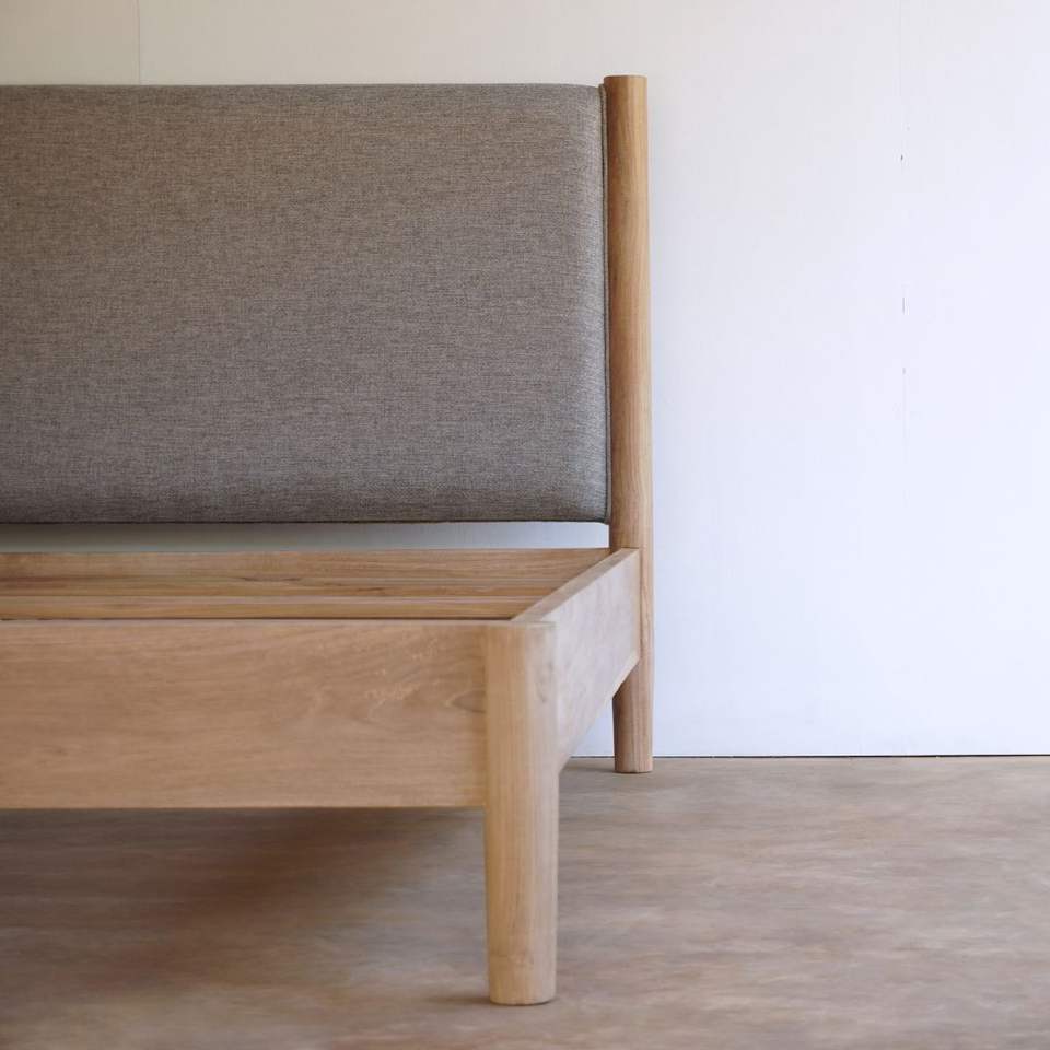 Solid Teak Wood Beds for Bedroom Furniture Minimalist Design King Size Bed with Upholstery Headboard Solid Wood Beds