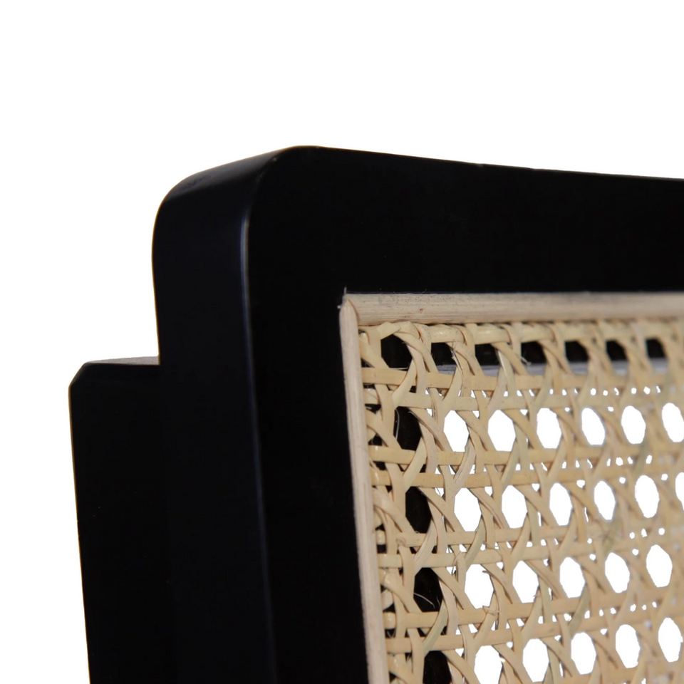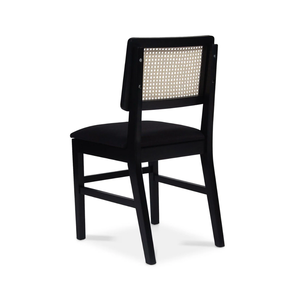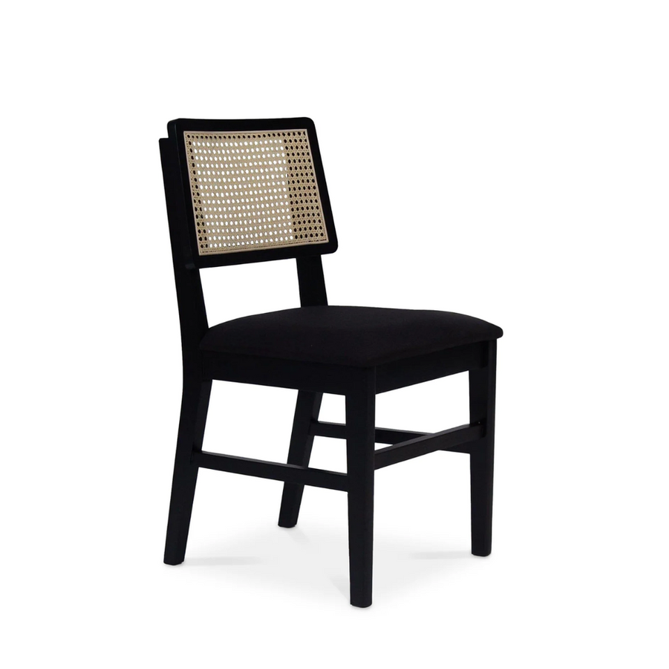 เก้าอี้ทานข้าวไม้สักแท้ ดีไซน์หรูหรา พร้อมพนักพิงหวายธรรมชาติและเบาะหุ้มผ้า เหมาะสำหรับร้านอาหารและโครงการตกแต่งภายใน