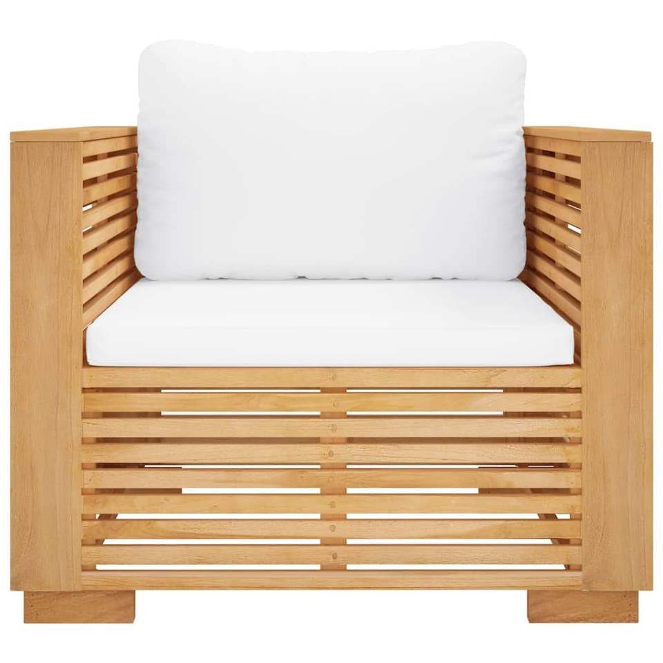เก้าอี้โซฟาเดี่ยวไม้สักแท้ ทนทานและมีสไตล์ สีไม้สักและครีม สำหรับใช้ในสวน