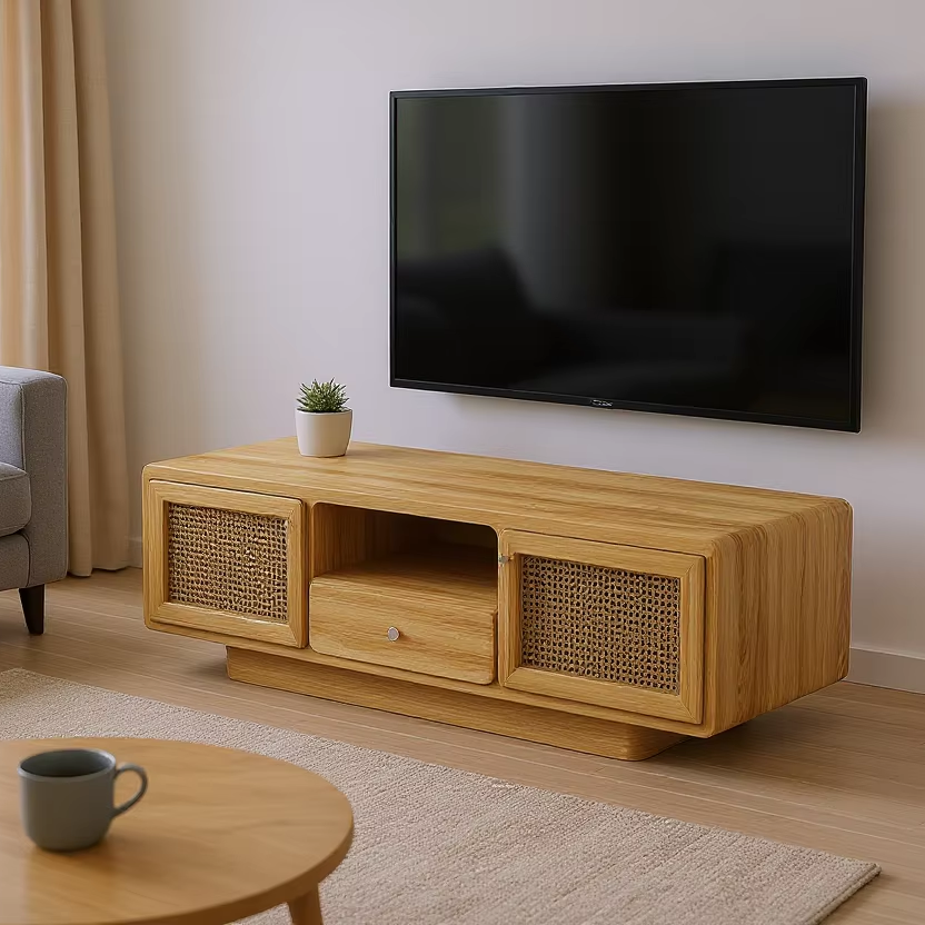 โต๊ะทีวีไม้สักเนื้อแข็งดีไซน์มินิมอลลิสต์สำหรับเฟอร์นิเจอร์ในร่มและในบ้านสำหรับห้องนั่งเล่นโรงแรมอพาร์ทเมน