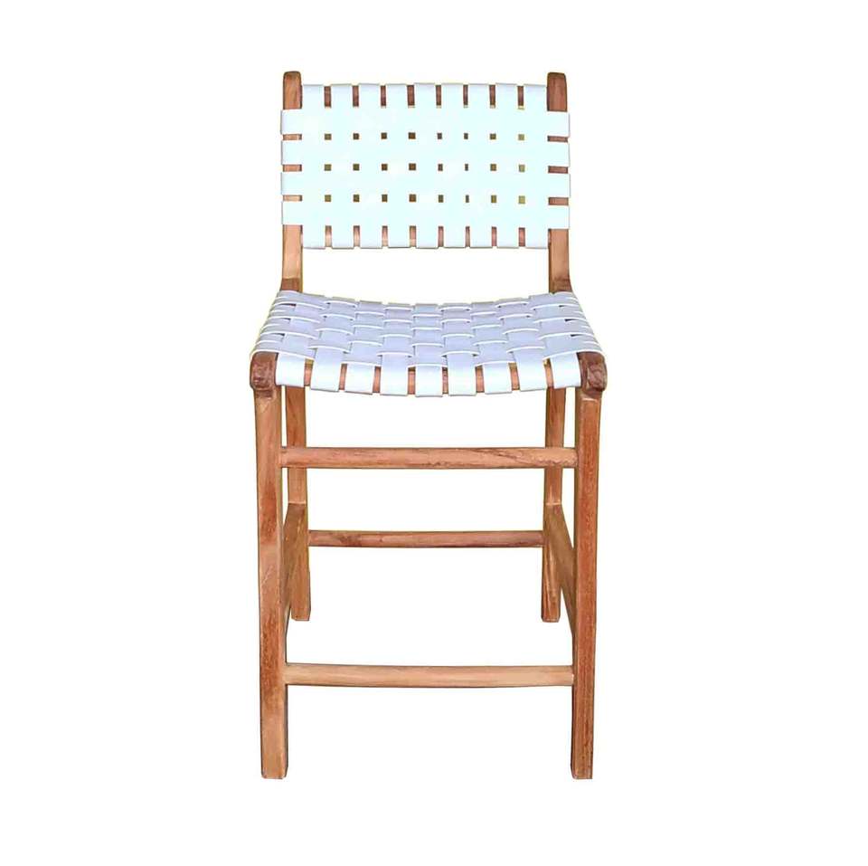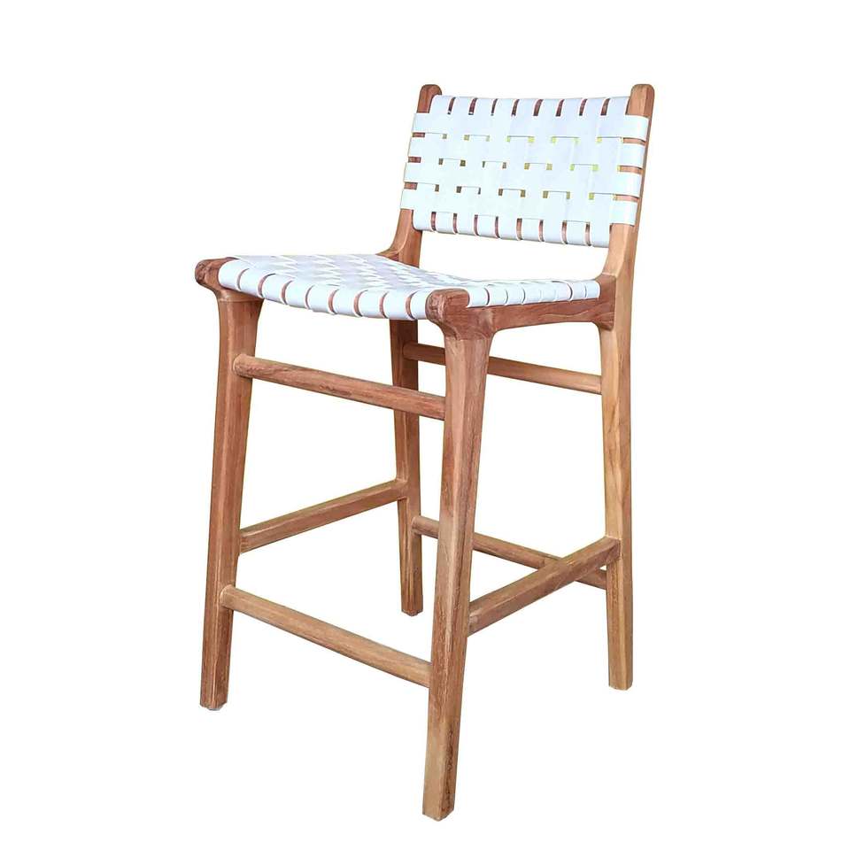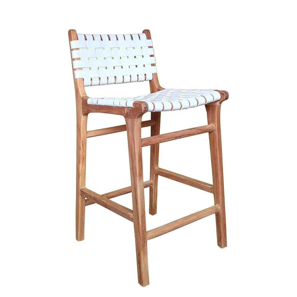 เก้าอี้บาร์หนังวัวแท้เก้าอี้สูงเก้าอี้ไม้สักทอสีขาวเฟอร์นิเจอร์บ้านสไตล์โมเดิร์นขายดี