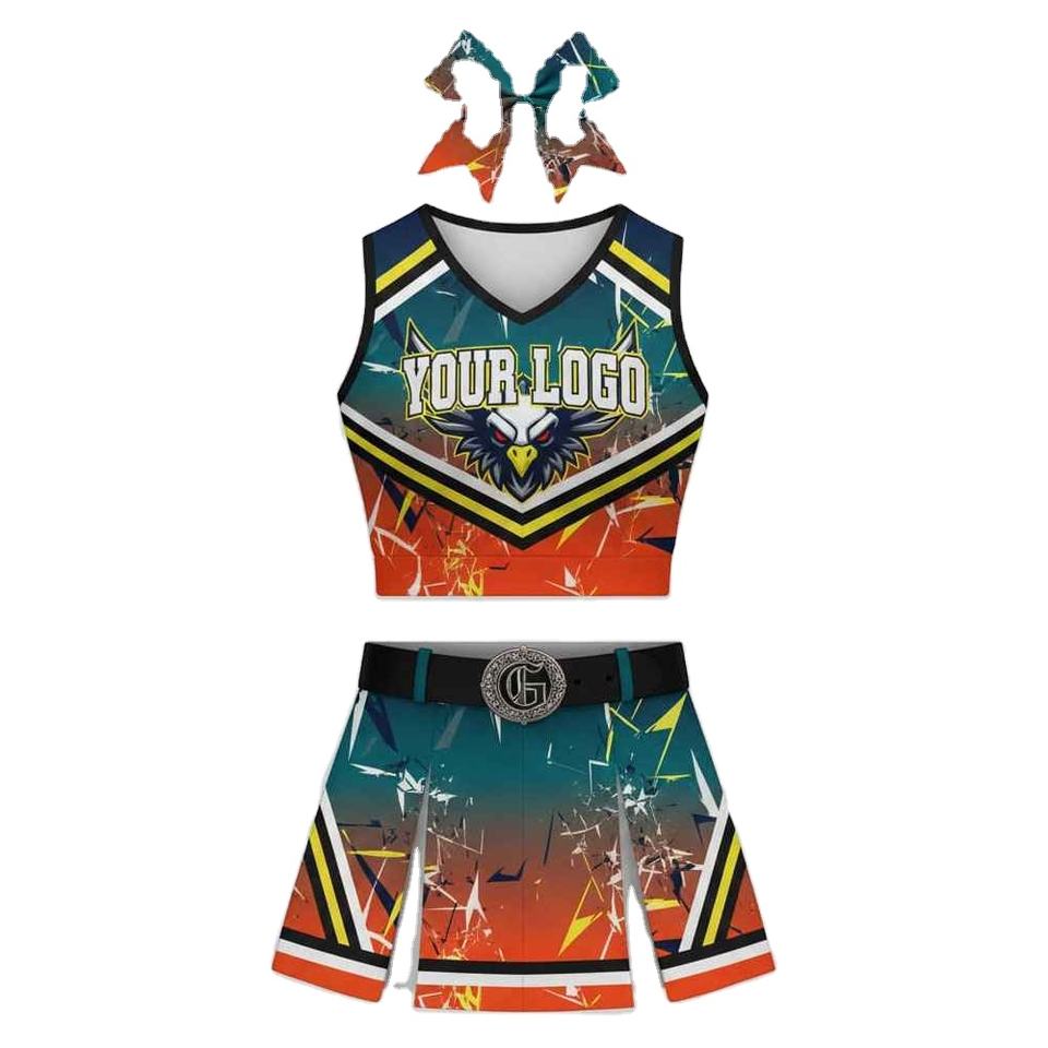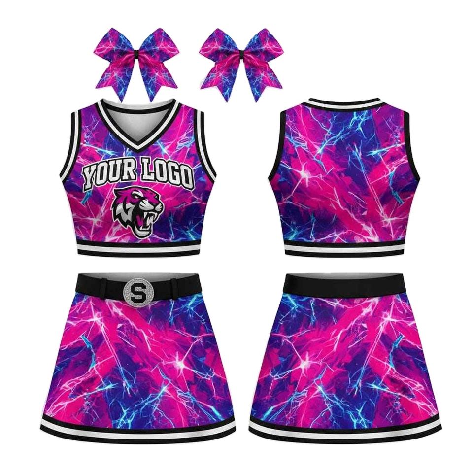 ชุดยูนิฟอร์มเชียร์ลีดเดอร์แบบซับลิเมชั่น ดีไซน์ล่าสุด ขนาดใหญ่พิเศษ ระบายอากาศได้ดี ผลิตจากโพลีเอสเตอร์ 100% สำหรับการฝึกซ้อม ยอดขายดีที่สุดจาก Solid Traders