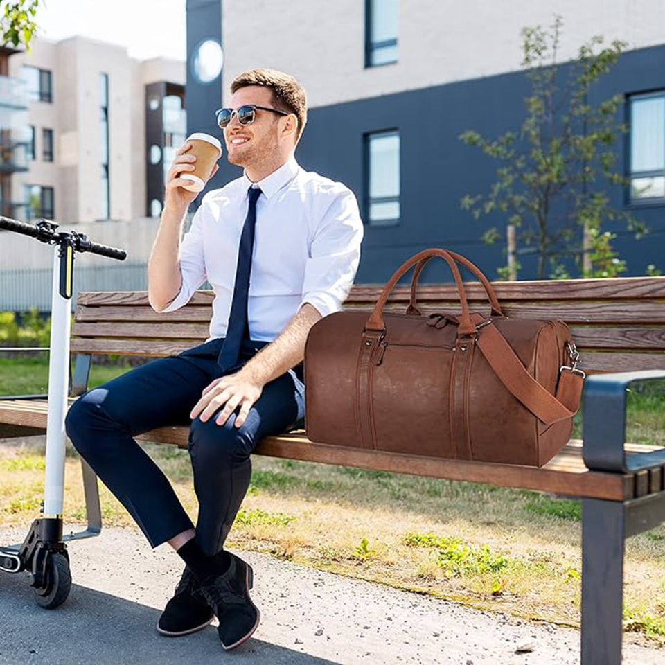 กระเป๋าเดินทางหนังสีน้ำตาลมัลติฟังก์ชั่นทันสมัยกระเป๋าทรงดัฟเฟิลแบบมีซิปกระเป๋าทรงสปอร์ตระบายอากาศได้แบบตะวันตก