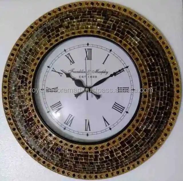 นาฬิกาแขวนผนังควอทซ์สุดหรูสำหรับตกแต่งในร่มเข็มแก้วโมเสกโลหะสำหรับตกแต่งบ้านสำนักงานห้องนั่งเล่น