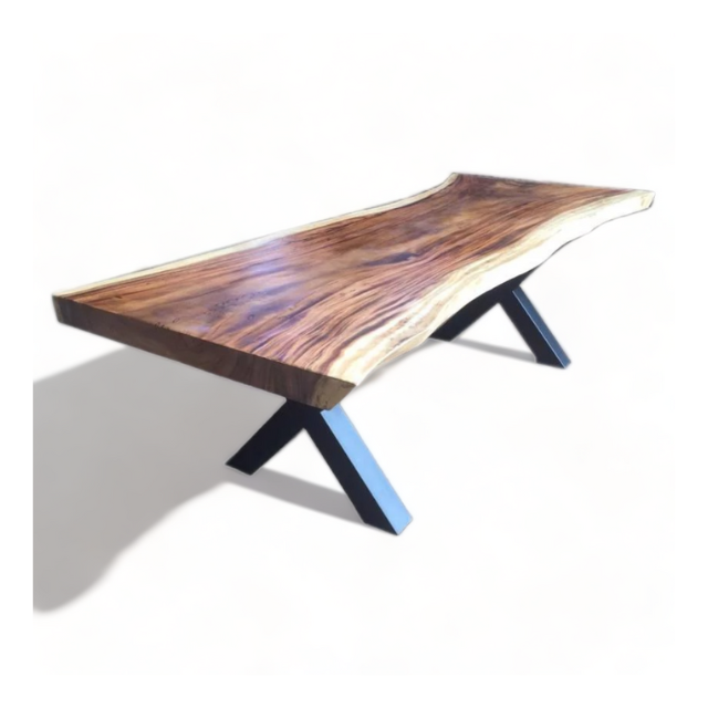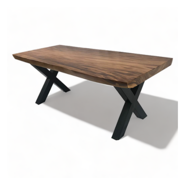 โต๊ะไม้วอลนัทแข็งพร้อมขาเหล็กสีดำและขอบสดโต๊ะรับประทานอาหารแบบแผ่นพื้นโต๊ะในโรงแรมเฟอร์นิเจอร์โรงแรมโต๊ะในโรงแรม
