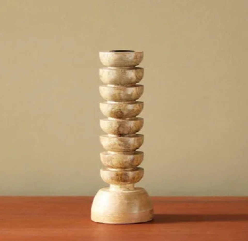 เชิงเทียนไม้มะม่วงสีโทนอุ่น ทำด้วยมือ ปรับแต่งสีได้ เหมาะสำหรับการทำสมาธิ โยคะ สตูดิโอ จัดแสงสว่าง ขายส่ง