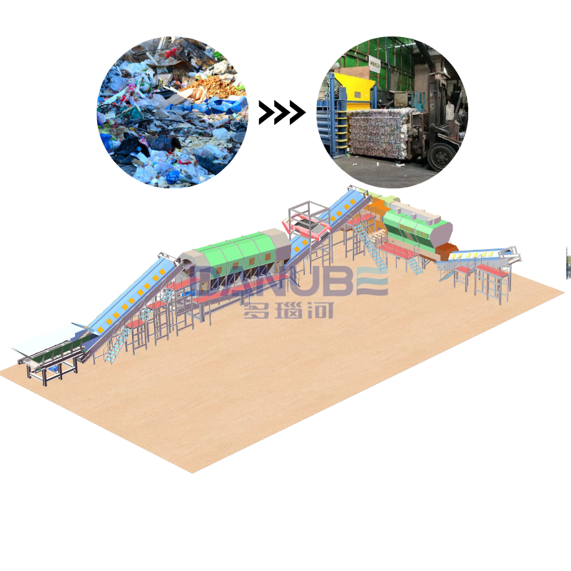 โรงงานคัดแยกขยะมูลฝอย อุปกรณ์คัดแยกขยะขนาดใหญ่ในเมือง สายการรีไซเคิลขยะของเทศบาล