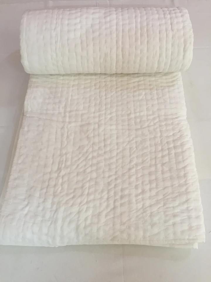 ผ้าห่มคันธาผ้าฝ้ายสีขาวล้วน งานเย็บมือ ผ้าห่มคันธาสีขาวเรียบแบบทำมือ ใช้ได้สองด้าน ผ้าห่มคลุมเตียง ผ้าห่มสำหรับเครื่องปรับอากาศ