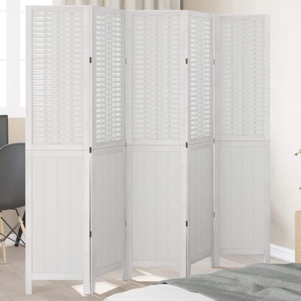 ฉากกั้นห้องไม้เพาโลเนียสีขาวล้วน 5 บาน