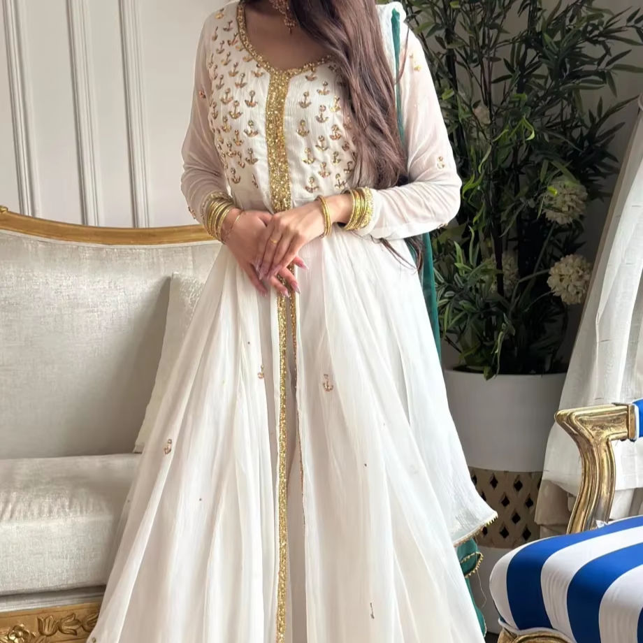 ชุดฮาราราและชุดอินเดียลาย Hi Slit สีขาวและสีเขียวล้วนเสื้อผ้าอินเดียและปากีสถาน