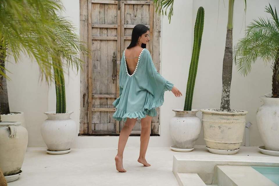 เสื้อแขนยาวแขนยาวของผู้หญิงสำหรับวันหยุดฤดูร้อนชุดลำลองสำหรับใส่ไปทะเลคอกลมมัดย้อมระบายอากาศได้ดีเป็นมิตรกับสิ่งแวดล้อม