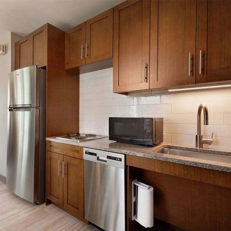 ชุดตู้ครัวไม้เนื้อแข็งสไตล์อเมริกันแบบดั้งเดิม ลายหินอ่อน หินอ่อนเทียม พร้อมก๊อกน้ำ-ผลิตในจีน