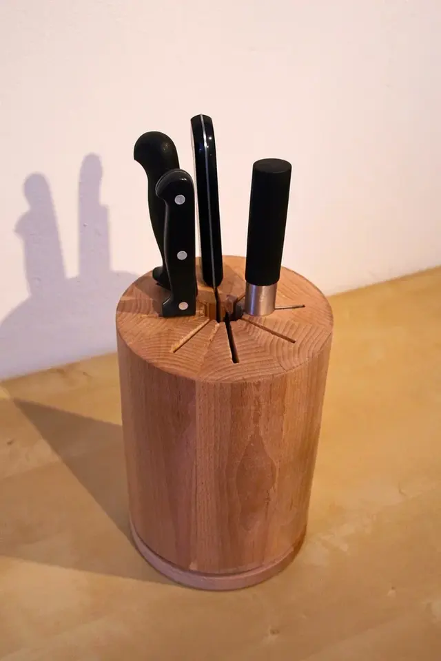 ที่วางมีดไม้เนื้อแข็งดีไซน์โบราณ พร้อมมีดด้ามสแตนเลส สำหรับใช้ในครัวเรือน โรงแรม และร้านอาหาร