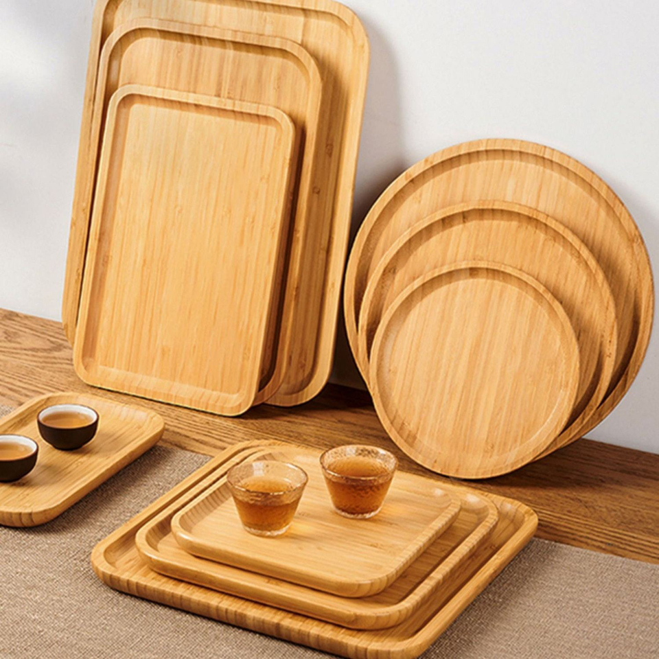 จานไม้ไผ่เนื้อแข็ง หลายขนาด ทรงกลม ถาดใส่ช้อนส้อม ถาดอาหารไม้ไผ่สั่งทำ งานปาร์ตี้ ปลอดสารพิษ วาดด้วยมือ