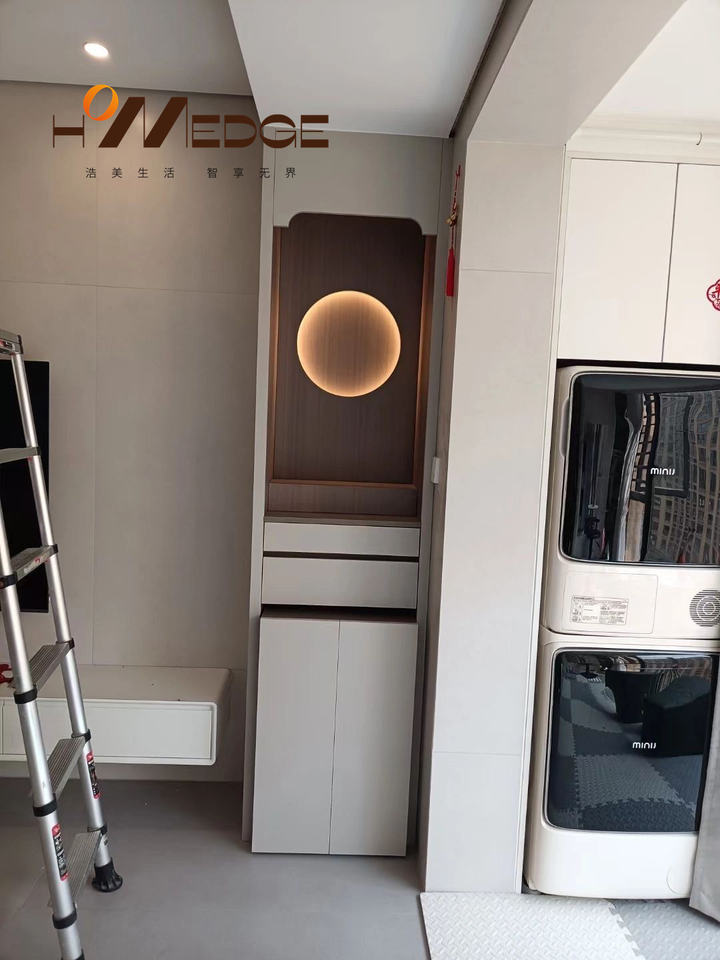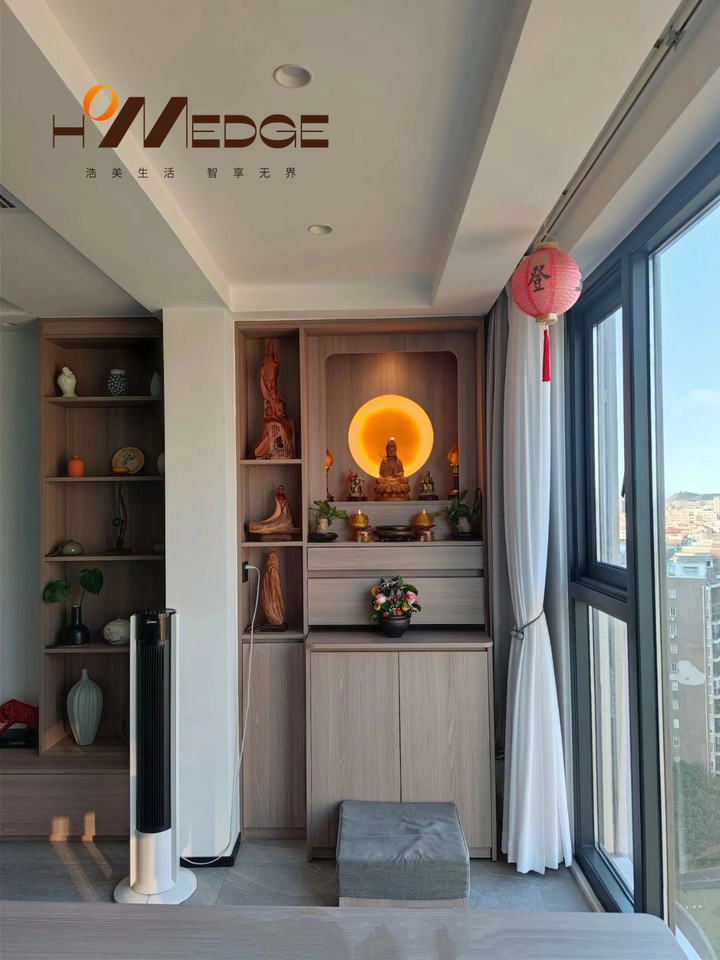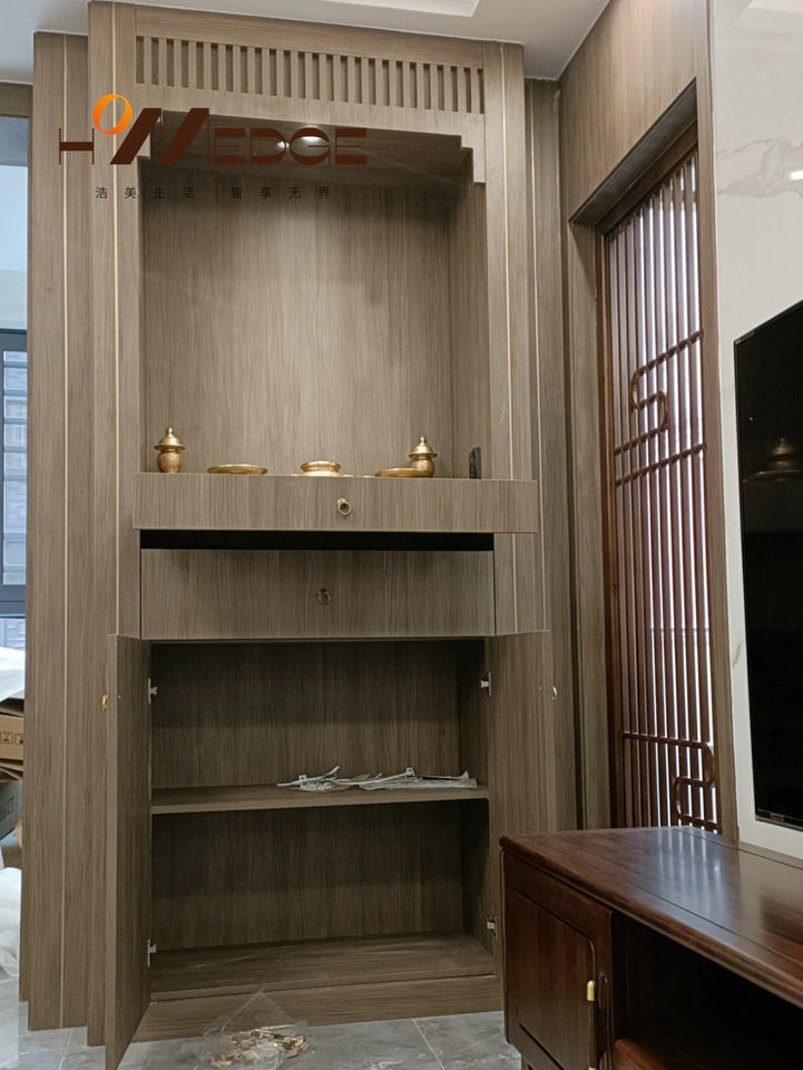 ตู้บูชาพระพุทธรูปไม้เนื้อแข็งพร้อมโต๊ะพระกวนอิมและโต๊ะเสริมโชคลาภสำหรับห้องนั่งเล่นสมัยใหม่