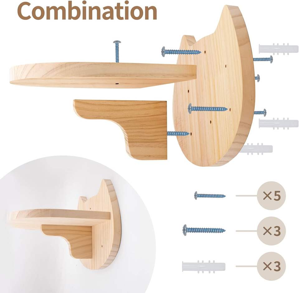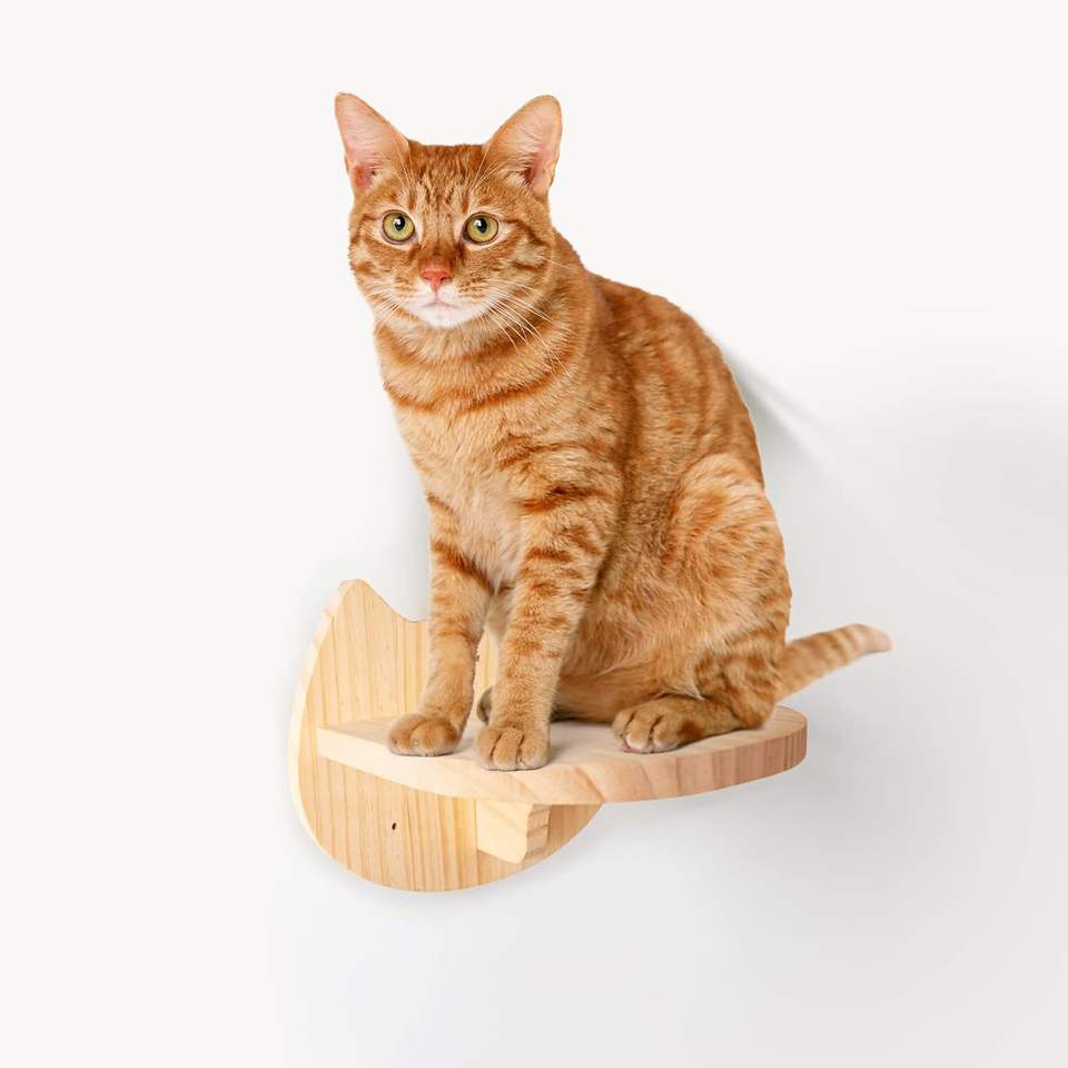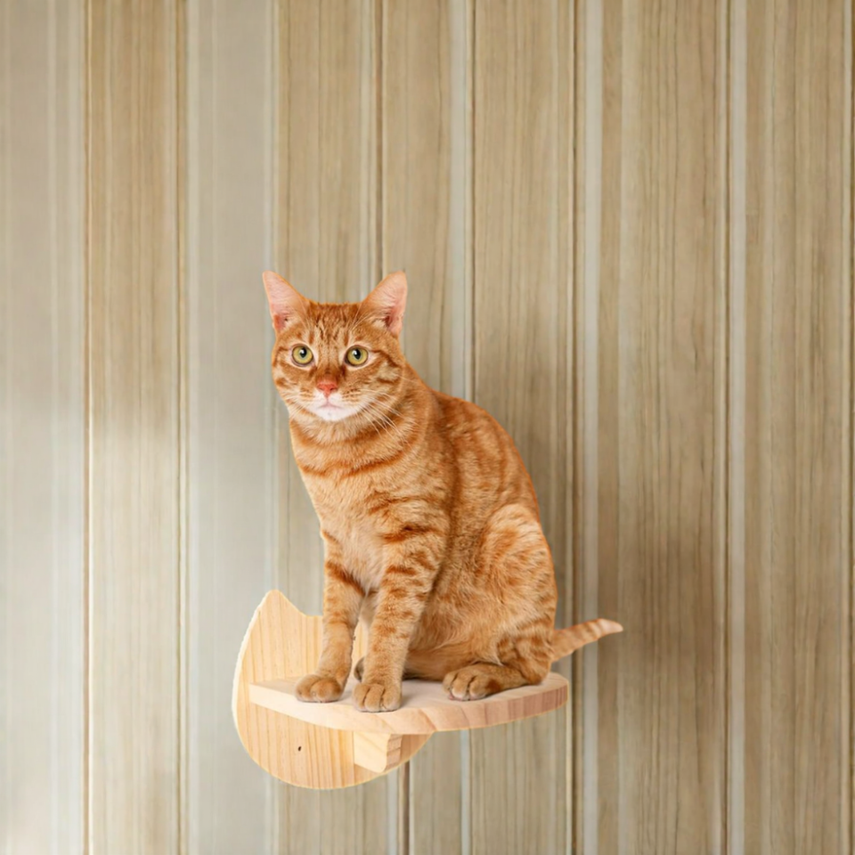 ชั้นวางแมวปีนเขาไม้เนื้อแข็ง DIY รูปทรงน่ารักในร่มลูกแมวเกาะต้นไม้ติดผนังขั้นบันไดสำหรับตกแต่งบ้านในห้องนั่งเล่น