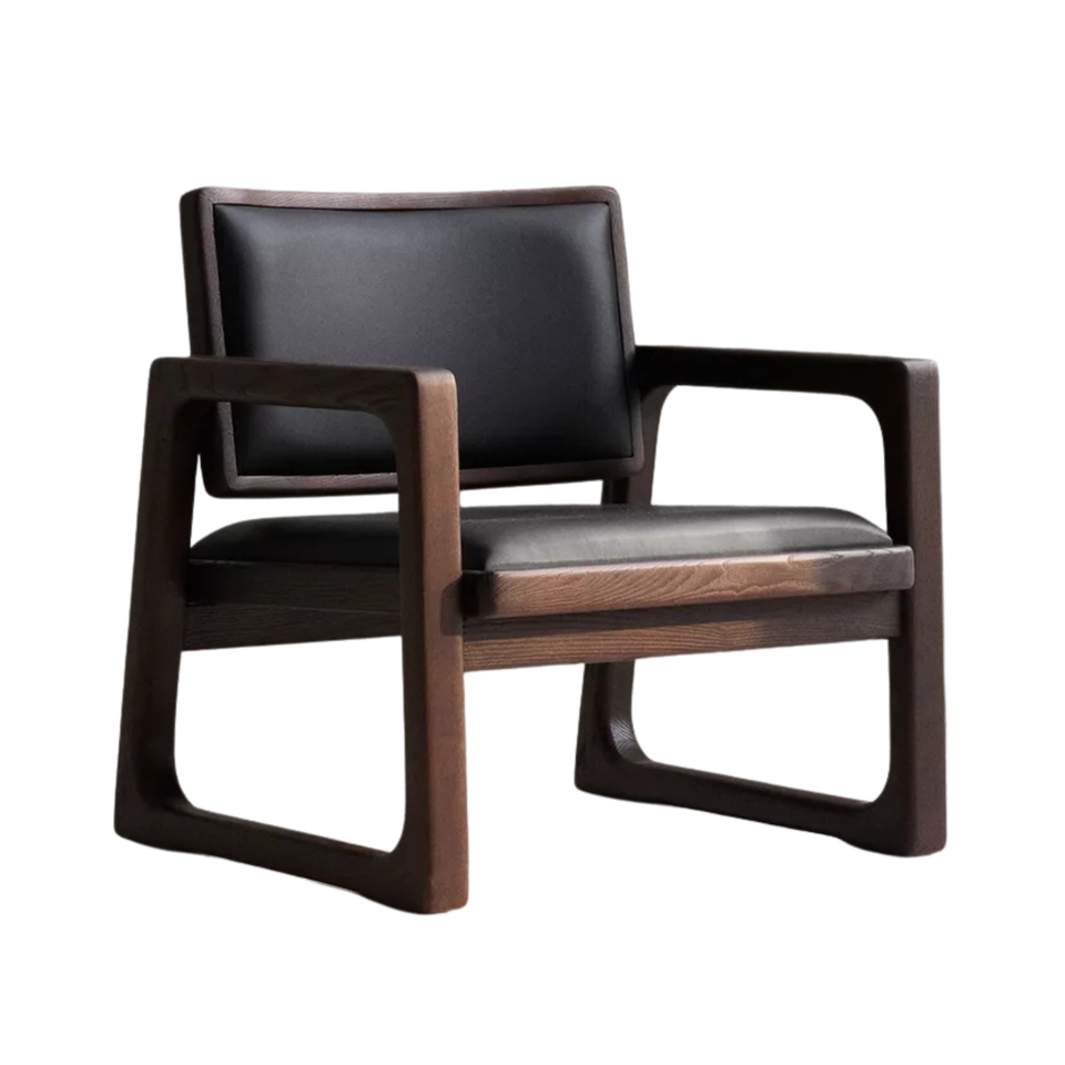 เก้าอี้ไม้เนื้อแข็งพร้อมที่วางแขน เบาะหุ้มหนัง PU เก้าอี้พักผ่อนสไตล์มินิมอลทันสมัยสำหรับเฟอร์นิเจอร์โรงแรม คาเฟ่ ร้านอาหาร
