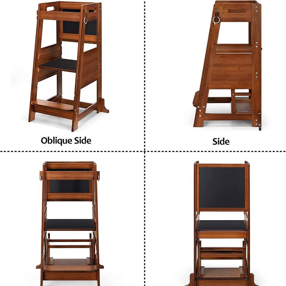 หอคอยการเรียนรู้สำหรับเด็กทำจากไม้เนื้อแข็ง พร้อมที่วางเท้า ปรับความสูงได้ เก้าอี้สำหรับเด็ก อุปกรณ์การศึกษา
