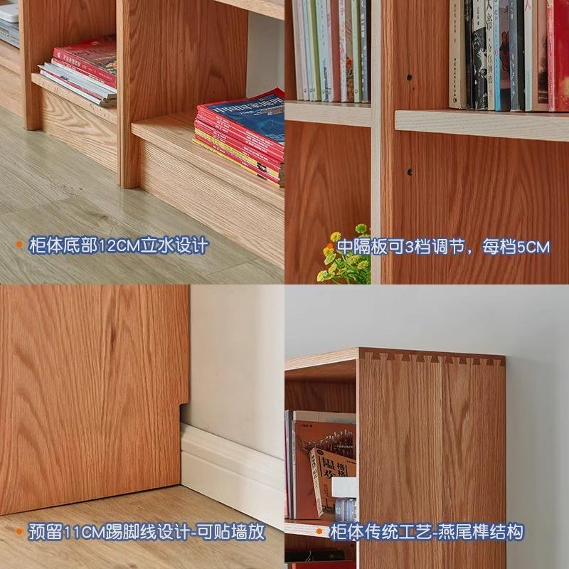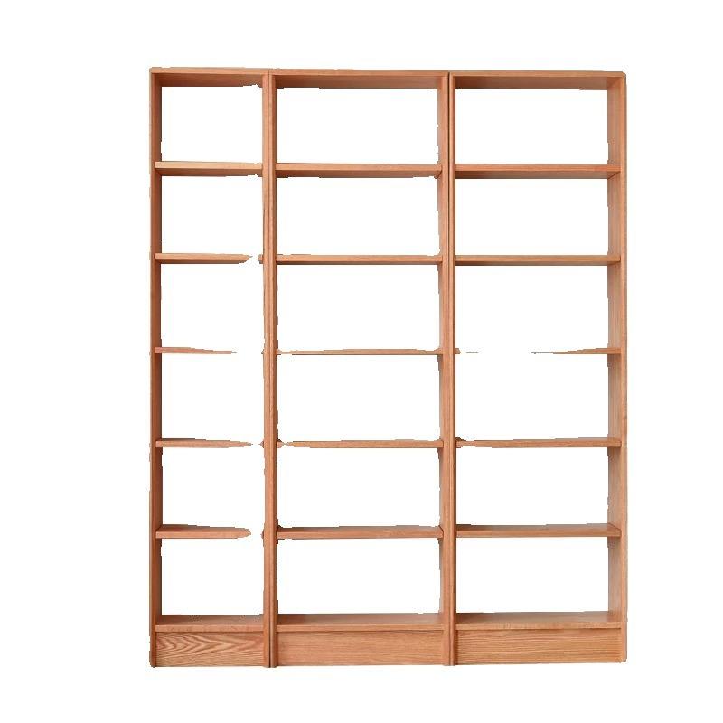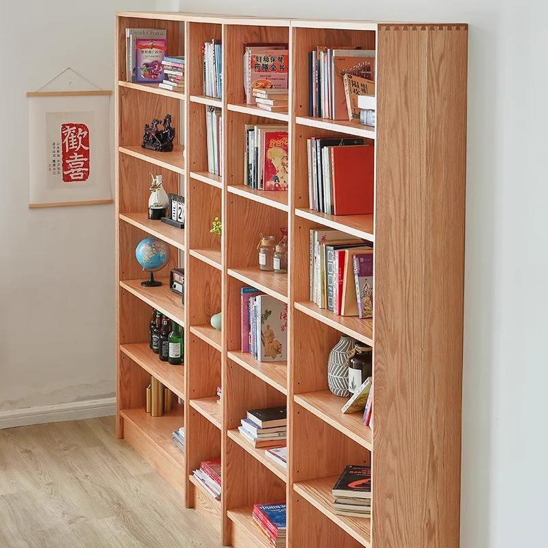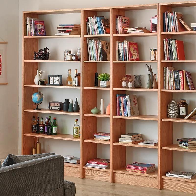 ตู้หนังสือไม้จริงแบบประกอบได้ ไม้เชอร์รี่และไม้โอ๊คแดง ชั้นวางของแบบโมดูลาร์เต็มผนัง