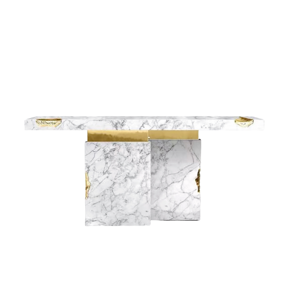 โต๊ะคอนโซลไม้จริงทรงมุม ทำมือ 5 ชั้น ปรับเปลี่ยนเป็นโต๊ะโซฟาได้ ใช้ได้ทั้งทางเข้าบ้านและห้องนั่งเล่น ฐานทรงเรขาคณิต ดีไซน์ร่วมสมัย
