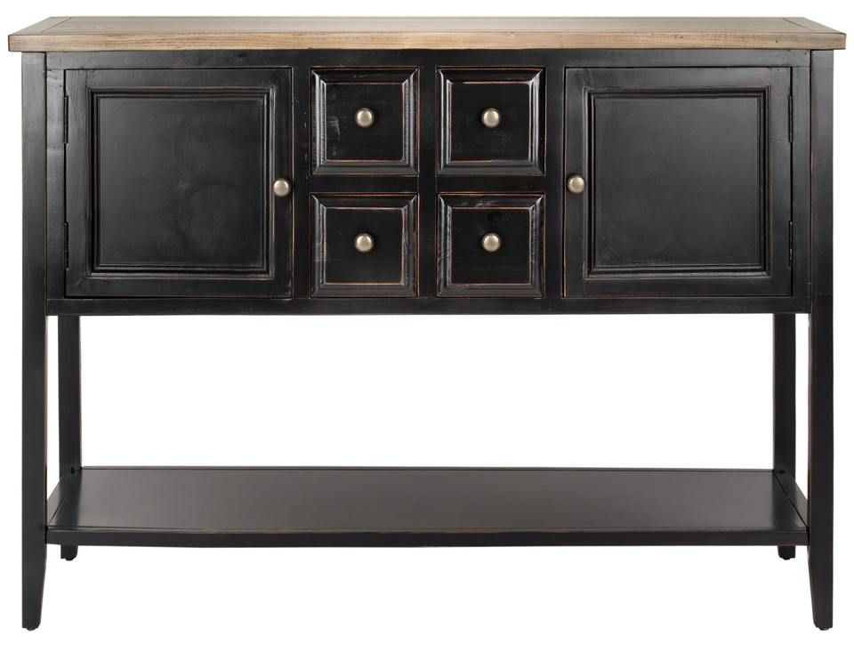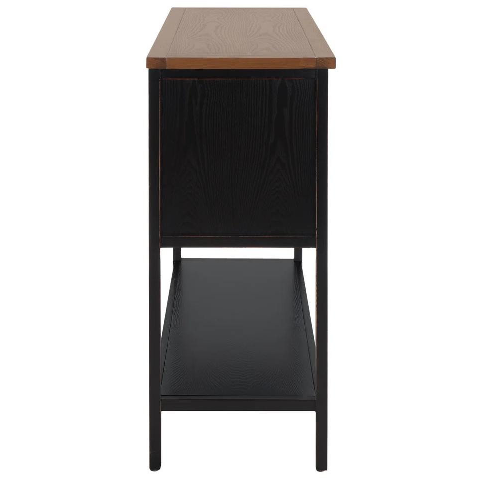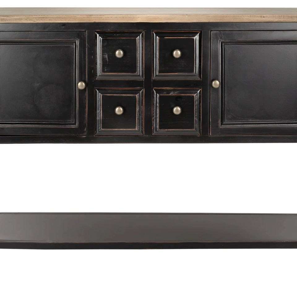 โต๊ะคอนโซลไม้เนื้อแข็ง สีดำ ดีไซน์แบบดิสเทรส 4 ลิ้นชัก 2 ตู้เก็บของ เฟอร์นิเจอร์สำหรับจัดเก็บของบริเวณทางเข้า