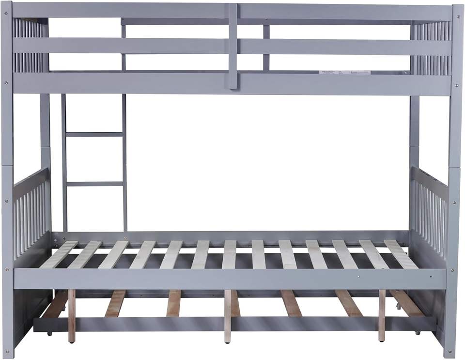 เตียงสองชั้นแบบปรับได้ทำจากไม้เนื้อแข็งแปลงสภาพได้เต็มรูปแบบพร้อมด้วยบันไดที่หรูหรารางด้านความปลอดภัยสีเทาและการออกแบบแบบดั้งเดิม