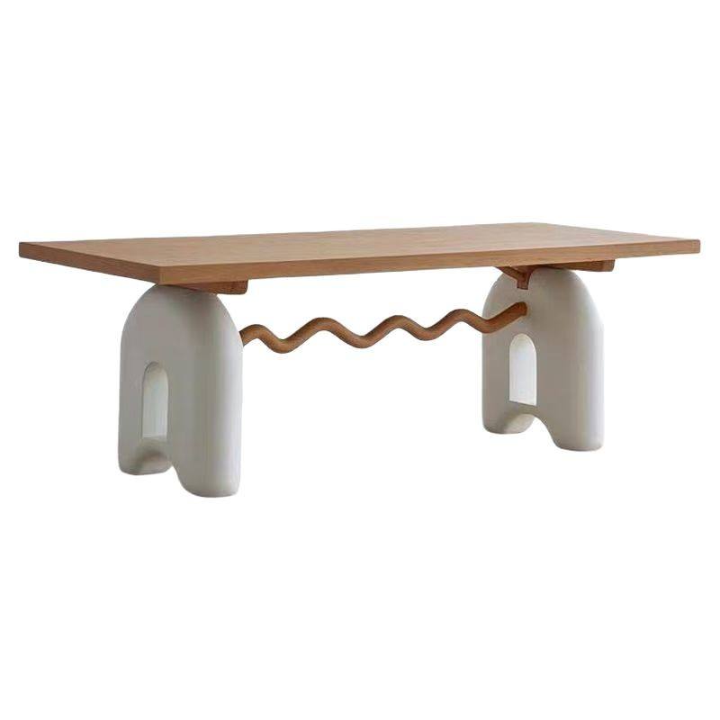 โต๊ะอาหารไม้เนื้อแข็งสีครีมทรงสี่เหลี่ยมผืนผ้า แข็งแรง ทนทาน เหมาะสำหรับห้องรับประทานอาหาร
