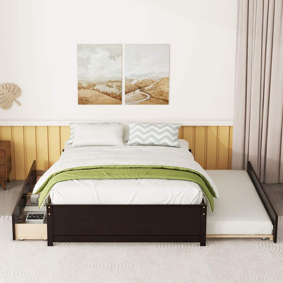 โครงเตียงไม้จริง dB แบบเต็มตัวพร้อมลิ้นชักสองชั้นสไตล์เอสเพรสโซ่สีทันสมัยสำหรับห้องนอนเฟอร์นิเจอร์บ้าน