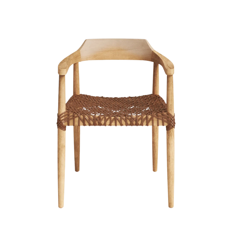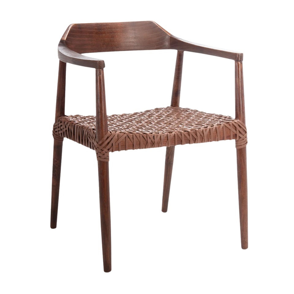 เก้าอี้รับประทานอาหารไม้เนื้อแข็งพร้อมที่นั่งทอมือเก้าอี้เท้าแขนแบบทันสมัย | กรอบไม้ที่ทนทานสำหรับบ้านคาเฟ่และพื้นที่รับประทานอาหาร